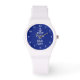 Keep Calm and sail on nautical wrist watch gift idea for sailing enthusiast. Customizable colours. Vintage Keepcalm typography template with white boat anchor silhouette. Personalizable navy blue background colour and text. Cute Birthday gift idea for girl, teenager, girlfriend, sailor wife, mom, friend, coworker, colleague, sister, aunt, grandma etc.