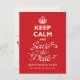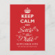 Ivory White Keep Calm Typography Text On A Red Background, Flourish, Whimsical And Elegant Script, Funny Save The Date Announcement Postcard.