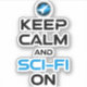 Keep Calm And Sci-Fi On. Funny sci-fi lover gift idea for a man, woman, teens or kids who love science fiction, outer space, rocket ships and exploring the universe, and is a scifi geek or nerd. Do you love science fiction books, sci-fi tv shows or sci-fi movies? If you’re a sci-fi fan, and have a sense of humour, then this design is perfect for you! Great to wear to a science fiction convention.