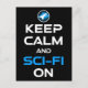 Keep Calm And Sci-Fi On. Funny sci-fi lover gift idea for a man, woman, teens or kids who love science fiction, outer space, rocket ships and exploring the universe, and is a scifi geek or nerd. Do you love science fiction books, sci-fi tv shows or sci-fi movies? If you’re a sci-fi fan, and have a sense of humour, then this design is perfect for you! Great to wear to a science fiction convention.