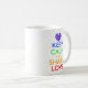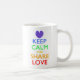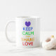 Celebrate pride with this fun design that spoofs the famous British propaganda phrase, which here reads "Keep Calm and Share Love" in the same poster-style all capital font. The words are in rainbow colours and the crown icon has been replaced by a purple heart. This cheerful design is great for spreading love among your community. Love is love.