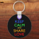 Celebrate pride with this fun design that spoofs the famous British propaganda phrase, which here reads "Keep Calm and Share Love" in the same poster-style all capital font. The words are in rainbow colours and the crown icon has been replaced by a purple heart. This cheerful design is great for spreading love among your community. Love is love.