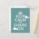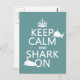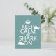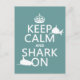 This reads 'Keep Calm and Shark On' in the style of the classic keep calm poster. Silhouettes of two sharks swim alongside the words. It's a great pleasing design, perfect for anyone who loves sharks.