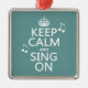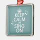 This reads Keep Calm and Sing On, in the style of the classic keep calm poster. There are music notes floating beside the words. It's one of my most popular designs, and popular with everyone who loves to sing.