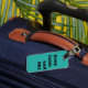 For the skier in your family, social circle, or you: Funny quote on blue luggage tag with leather strap.