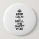 KEEP CALM AND SMELL THE SWEET PEAS 4 INCH ROUND BUTTON