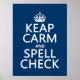 This is the classic war poster "Keep Calm and Carry On" still with the original crown at the top. It's reworded to "Keap Carm and Spell Check". It's a funny design that makes perfect presents or gifts for teachers and students alike. Not to mention editors and writers, anyone who works with words. It's a great poster for your classroom, or study hall too.