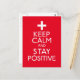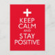 Keep Calm and Stay Positive You can customize the BACKGROUND colour by clicking the "CUSTOMIZE IT" button and change the colour. Keep Calm and Carry On was a motivational poster produced by the British government in 1939 in preparation for the Second World War.
