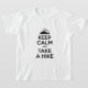 Keep Calm And Take A Hike cool design. Features a mountain icon. Great for a boy or girl to wear on trails, while climbing a mountain, or in a forest. Great gift for any child during autumn.