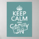 This design reads 'Keep Calm and Take The Pills', where 'Take the Pills' looks as though it has been applied as a sticker over the original 'Carry On' wording. It's a fun, humourous design, perfect for anyone caught up in a hectic lifestyle who needs a little more than to simply carry on.