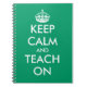Keep calm and teach on notebook | School supplies. Cute vintage gift idea for school teachers and coaches. Personalizable typography design and background colour. ie green. Create your own Keep calm and carry on parody.