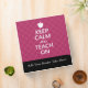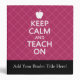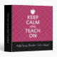 Pretty fuchsia magenta pink plaid background with white "keep calm and teach on" text, a fresh and feminine gift for the female teacher to provide motivation and inspiration from the classic "keep calm and carry on" British wwii propaganda. A lovely teacher appreciation gift. Copyright © www.CuteComfy.com