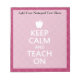Pretty fuchsia magenta pink plaid background with white "keep calm and teach on" text, a fresh and feminine gift for the female teacher to provide motivation and inspiration from the classic "keep calm and carry on" British wwii propaganda.  A lovely teacher appreciation gift. Copyright © www.CuteComfy.com