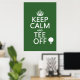This is the classic Keep Calm poster reworded to Keep Calm and Tee Off. There is a silhouette of a golf ball on a tee next to the letters. It's a popular beautiful design, popular with all golf lovers. Makes great gifts for golfers, coaches, and fans alike.