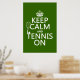 This is the classic Keep Calm poster, reworded to 'Keep Calm and Tennis On'. I've kept the crown at the top and put a racket and ball on the letters. It's a popular design, great for anyone who loves the game of tennis, either as a player, referee, coach or fan.