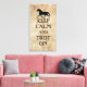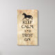 This stylish design is a parody of a vintage british WWII poster, guiding residents to "keep calm and carry on". It has text you can customize to say what you want with the image of a horse trotting. A great gift for horse lovers and animal lovers of all ages from hunter jumper horseback riders to dressage and country cowgirl and cowboy.
