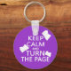 This is the classic war poster "Keep Calm and Carry On" reworded to "Keep Calm and Turn the Page". I've added silhouettes of books falling by the sides of the words, with fluttering pages.
