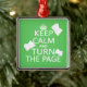This is the classic war poster "Keep Calm and Carry On" reworded to "Keep Calm and Turn the Page". I've added silhouettes of books falling by the sides of the words, with fluttering pages.