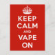 A vaper's funny rendition of the famous "Keep calm and carry on" World War II effort poster. The slogan is Keep Calm and Vape On and the colour is red. Vape on and be inspired, ecig lovers!