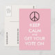 If you believe in the power of Women, our Keep Calm And VOTE Custom Pink Postcards are a cool reminder to like minded friends to get out and vote to support your favourite candidate! Parody inspired design features classic KEEP CALM motif joined with peace sign. Easily customize by adding your personalized message to the back at no extra charge! <em>Volume discounts available!</em>