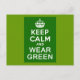 KEEP CALM AND WEAR GREEN for St Pats Day Postcard