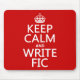 This reads Keep Calm and Write Fic, in the style of the classic keep calm poster. For any fan this is truly great advice in time of emergency. Whatever your fandom, whoever you ship, whatever canon does fic will mend everything. This design makes great gifts for fellow fans, and for meetups and conventions.