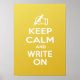 A product featuring Keep Calm and Write On meme slogan, a variation of the famous Keep Calm and Carry On slogan