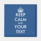 Square Keep calm and your text magnet. Customizable blue and white template with crown. Create your own funny keepcalmandcarryon typography parody. Custom background colour. Vintage Keepcalm examples for your fridge: Keep calm and carry on. Keep calm and party on. Keep calm and love me.