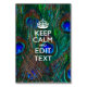 Your personalized Keep Calm saying on a fine custom colourful peacock feathers style decor. A personalized Keep Calm style saying on a one of a kind gift. Humourous or whimsical try on your creative words on two editable lines of text. Remember to use CAPITAL letters for best results.