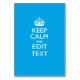 Your personalized Keep Calm saying on a fine custom sky blue accent decor. A personalized Keep Calm style saying on a one of a kind gift. Humourous or whimsical try on your creative words on two editable lines of text. Remember to use CAPITAL letters for best results.