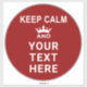 Utilize these sticker decals for signs or floor markers to post notices and reminders to KEEP CALM and YOUR MESSAGE. The design is on an editable red colour. To change the colour, click on the CUSTOMIZE FURTHER TAB. Contact the designer if you'd like this design modified or on another product.