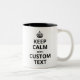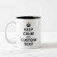 Make your own unique Keep Calm and Carry On quote with our easy to use mug template. Tap 'personalize' to edit the text to any phrase you like. Tap 'customize futher' to adjust the crown and font colour.