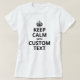 Make your own unique Keep Calm and Carry On quote with our easy to use shirt template. Tap 'personalize' to edit the text to any phrase you like. Tap 'customize futher' to adjust the crown and font colour.
