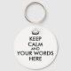 Make your own keep calm design on this customizable round keychain. It has the crown logo in black and says Keep Calm and Your Text.
