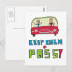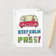Driving instructor and pupil taking driving test in funny car cartoon. The instructor is panicking but the new driver is calmly handling the car. A good luck, keep calm message for anyone looking to take their test.