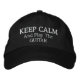 Funny music cap has embroidered guitar quote that says Keep Calm and Play The Guitar. Great as a music gift for a guitarist or guitar player in your band.