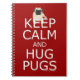 Keep Calm Hug Pugs Text Red blank lined Notebook