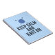 Funny Keep Calm and Knit On design makes a cute knitting gift. Knitter humour quote under pretty blue yarn and knitting needles.