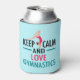 Funny Keep Calm and Love Gymnastics can cooler in beautiful teal. A cute gymnast humour postcard for a gymnastics coach or girl who loves tumbling in a pretty pink leotard.