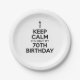Keep Calm It's Only My 70th Birthday funny paper plates. A great design for someone celebrating a 70th milestone birthday. There's no need to panic, we're only celebrating a seventieth birthday! Great party decor for a 70th birthday.