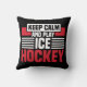 Hockey theme throw pillow with text of black, white, and red that reads Keep Calm And Play Ice Hockey!