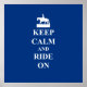 Modern equestrian take on the popular vintage "keep calm & carry on" posters, with "ride on" text and a white horse on a blue background, Visit the CUSTOMIZEDGIFTS STORE for more "keep calm" products.