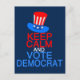 Keep Calm and Vote Democrat. A funny red, white, and blue democratic party election postcard for your liberal friends with the Uncle Sam political hat on top of this cute quote. Keep voting in the midterm and presidential elections for America.