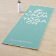 Enjoy your favourite yoga poses on this fabulous mat featuring white text "Keep Calm and Yoga On" with lotus flower on a solid mint green background. Add your name for a personal touch. Perfect for your exercise routine.