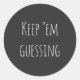 Keep ’em guessing" saying with simple white text Classic Round Sticker