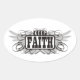 A decorative design featuring the words 'Keep Faith' with grey wings in the background.