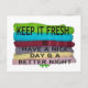 So why settle for generic postcards when you can create your own masterpieces that inspire and uplift? Whether you're sending a message of encouragement, celebrating a milestone, or simply staying in touch with loved ones, our "Keep it Fresh" Text Art Design Art Postcards are sure to make a memorable impression. Start designing yours today and spread a little positivity wherever you go.
