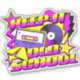 Colourful retro style vinyl record and cassette design with "Keep it old school " text decoration, geometric shapes, triangles, stars and rounded shapes