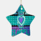 Keep It Simple: Cyan Heart & Clarity Pattern Art Ceramic Ornament
