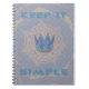 The central motif showcases a symbolic blue and gold crown, representing focus and inner royalty. This crown is set against a dynamic, geometric background: a soft lavender/light blue grid pattern overlaid with a radiating starburst in muted purples and creams. The powerful message "KEEP IT SIMPLE" boldly frames the top and bottom of the design in a coordinating light blue. This elegant combination of clean geometry and motivational symbolism in a sophisticated, lighter shade is ideal for anyone seeking clarity and a mindful approach to their daily life with a calm, understated aesthetic.